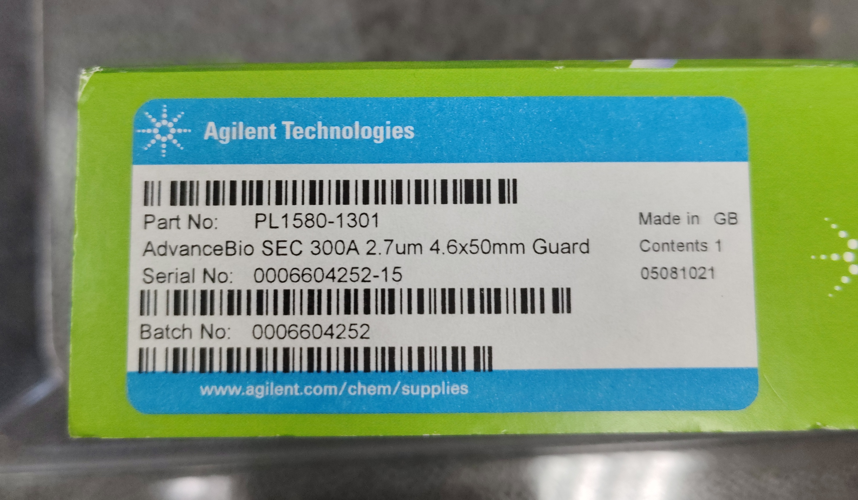 Intended use: as a guard column for aggregate & fragment analysis of proteins, monoclonal antibodies (mAb), and other large biomolecules