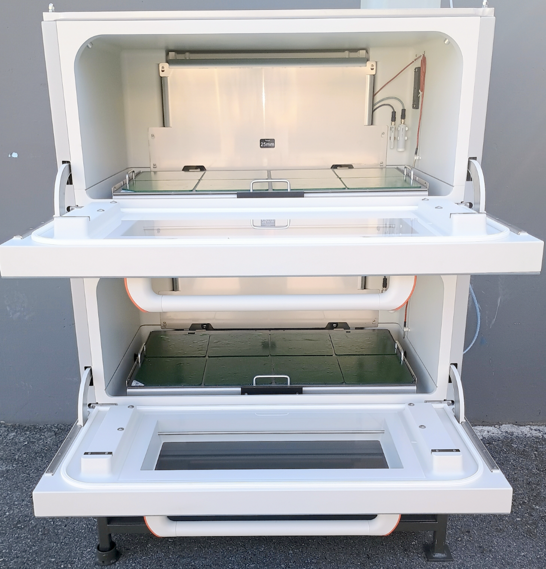Configured for heating, shaking, CO2 control, and humidity control, both chambers have a 25mm (1in.) orbital throw, 120V. Manufactured 2022.