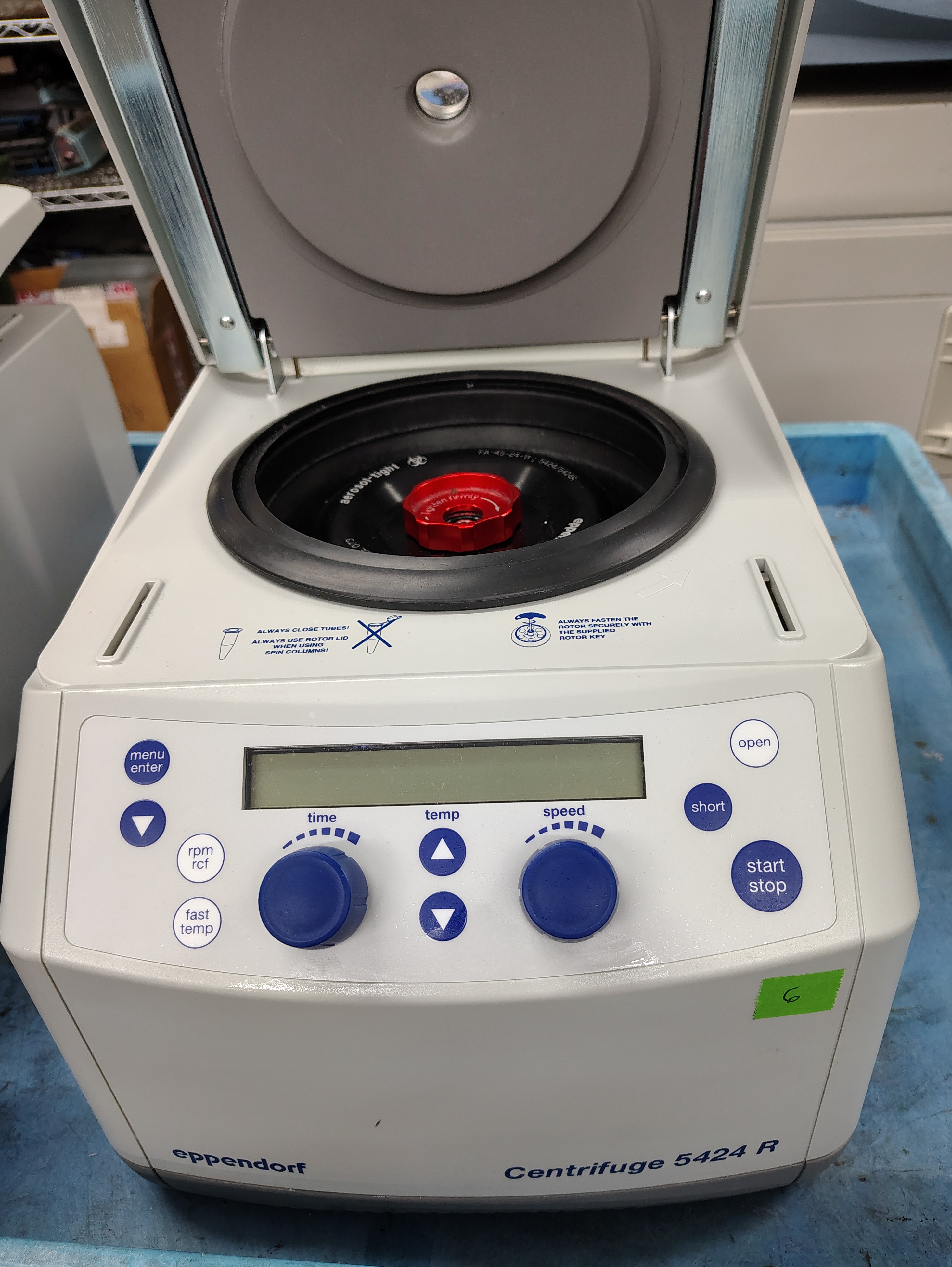 For use in modern molecular biology applications in Eppendorf and PCR tubes. Eppendorf 5424R refrigerated microcentrifuges feature a 24-place capacity and speed up to 21,130 x g. Patented compressor technology reduces vibrations and protects your samples. Equipped with the FA-45-24-11 rotor. With rotary knobs as pictured.