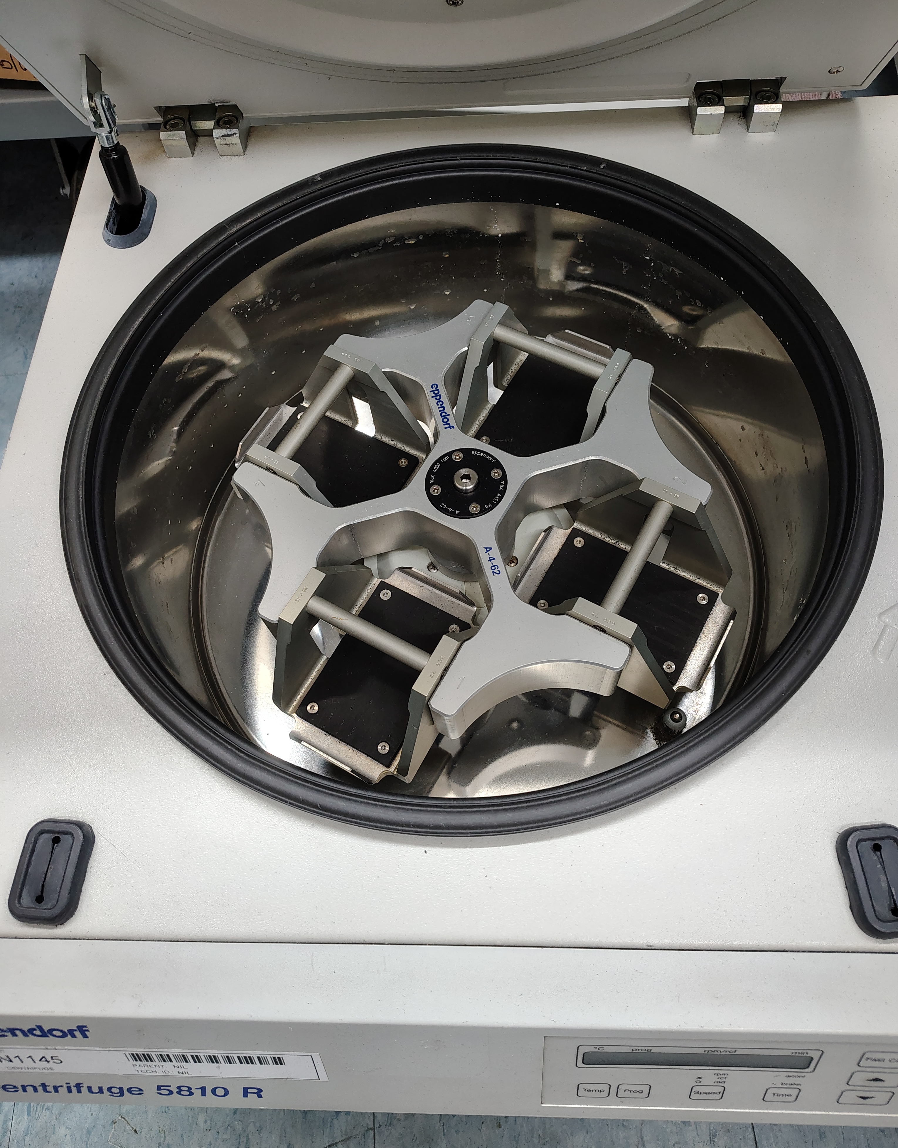 Benchtop refrigerating centrifuge with A-4-62 Rotor (swing-bucket rotor with 4x250-ml rectangular buckets)