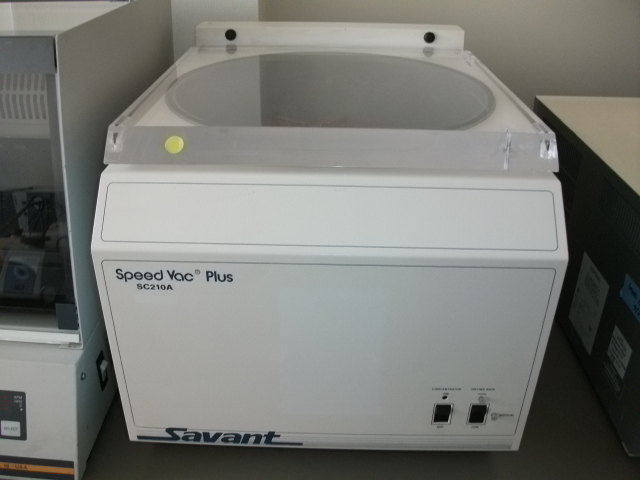 Savant SpeedVac SC210A-120 Concentrator is designed for the concentration of samples in aqueous solutions and/or low concentrations of non-aggressive organic solvents, large capacity, TEFLON coated chamber provides long lasting durability against harsh solvents, selectable heating levels: low, medium and high to optimize evaporation rate Specifications, plexiglas lid, automatic bleeder valve, volume Range/Tube: 0.4 to 500 ml, maximum tube capacity: 200 x 1.5 ml.