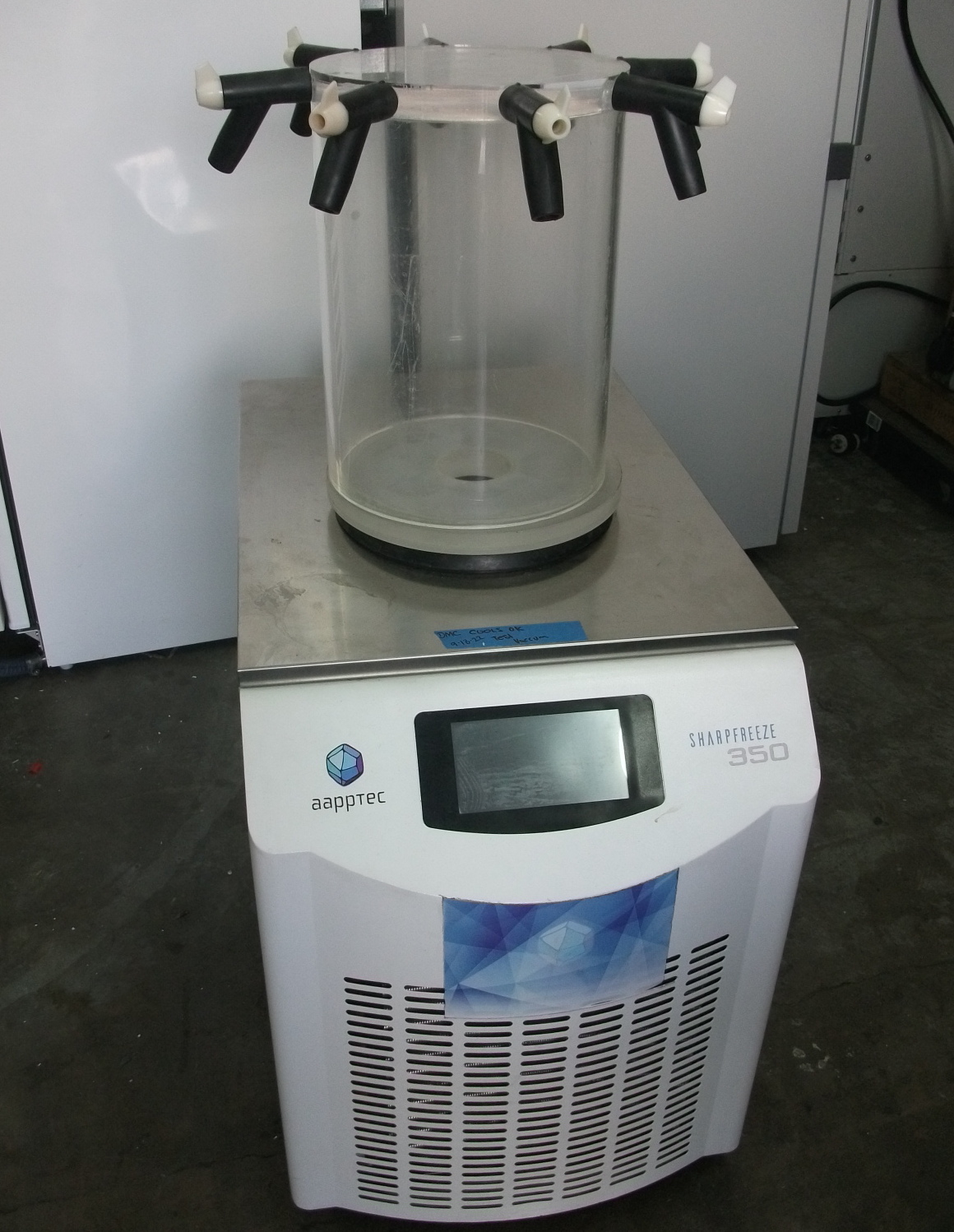 Flexible laboratory freeze dryer for peptides, proteins, nucleotides, PNAs and DNAs. It is easy to control through an electronic control panel on the front of the instrument. The 350 model is used for -55 ˚C temperature. Suitable for lyophilizing HPLC fractions containing acetonitrile or organic solvents.