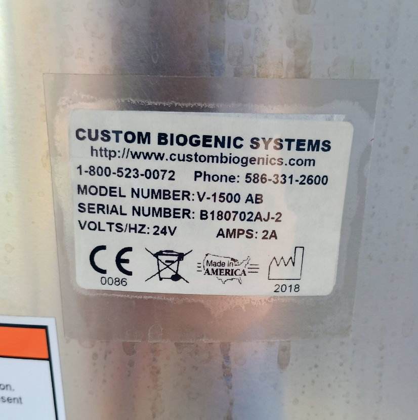 Custom Biogenics Systems CBS Isothermal V-1500 AB Series Cryogenic Nitrogen Storage System