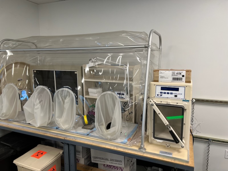 Coy Vinyl Anaerobic chambers are constructed of flexible PVC with padded base, efficient vacuum airlock, and aluminum support frame. The vinyl expands and contracts to allow for changes in internal pressure without expelling the expensive gas mix to room atmosphere. The large oval glove ports allow all users to reach deeper and higher into the chamber for greater storage capacity and ergonomics.