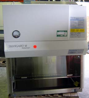 Baker SterilGARD III Advance SG 403 - 4 foot biosafety cabinet, on stand (not pictured), Class II, Type A/B3, manufactured in 2001. Includes UV light, 2 electrical outlets, vac & air fittings. 115V. The standard!