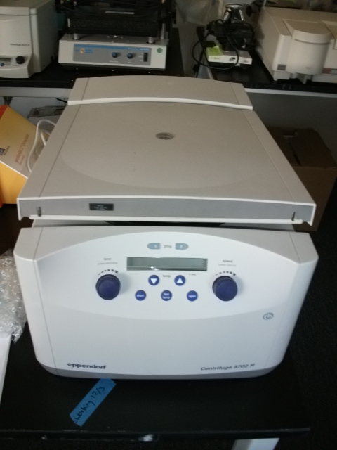 This Eppendorf 5702R benchtop refrigerated centrifuge comes w/the A-4-38 4-place swinging bucket rotor and four 2 x 15-ml inserts.