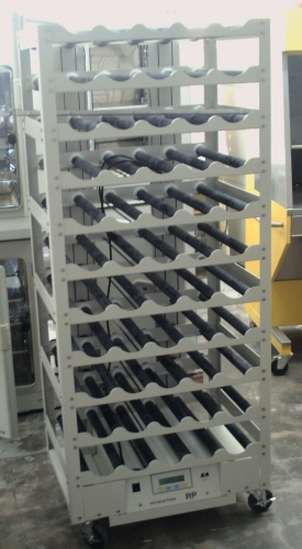 The Wheaton R2P 11-place roller apparatus is microprocessor controlled, hold up to 55 roller bottles, accurately displays bottle rotation speed and programmable soft start, stop, and reverse modes. 0.25 to 8.75 rpm bottle speed.